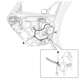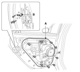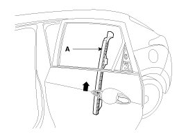 3. After loosening the mounting screws, then remove the rear door belt outside weatherstrip (A).