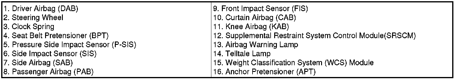 Driver Airbag (DAB) / Passenger Airbag (PAB) / Knee Airbag (KAB)