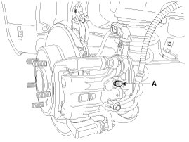 3. Loosen the right-rear brake bleed screw (A) to allow air to escape from the system. Then tighten the bleed screw securely.
