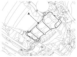 2. Remove the transaxle mounting bolt (A) and the service cover (B) on the bottom of the lower crankcase.