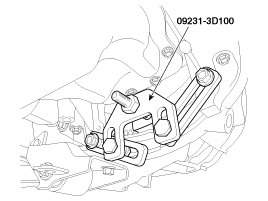- Install the SST (09231-2B100) to hold the ring gear after removing the starter.