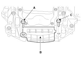 3. Remove the transaxle mounting bolt (C) on the bottom of the lower crankcase.
