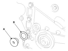 4. Remove the service plug bolt (A) with the gasket (B).
