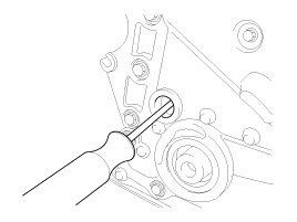 6. Using a suitable tool, move the tensioner arm to align the tensioner bolt hole with the service hole.