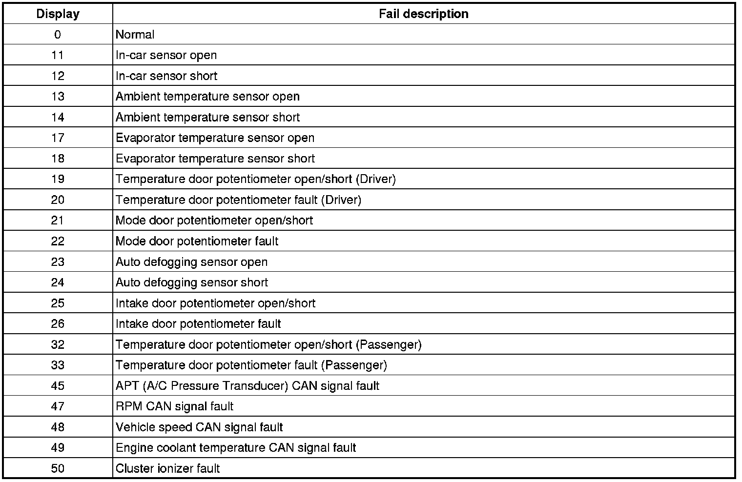 4. If fault codes are displayed when checking, inspect for malfunction causes by referring to fault codes table.
