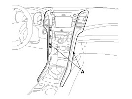 2. Using a screwdriver or remover, remove the crash pad center garnish (A).