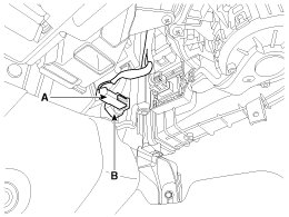 3. Remove the evaporator temperature sensor (B) by pulling it out after rotating it 90° in a counterclockwise direction.