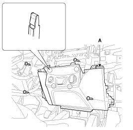 13. After loosening the mounting screw, then remove the crash pad lower switch (A).