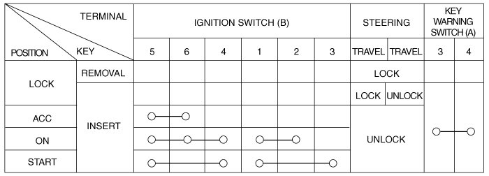 1. Disconnect the ignition switch connector (B) and key warning switch connector (A) from the steering column.
