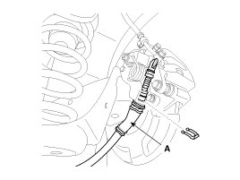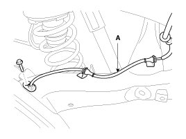 4. Loosen the bolt and then remove the wheel speed sensor cable (A).