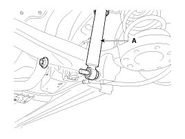 7. Loosen the bolt & nut and then remove the rear shock absorber (A) from the torsion beam axle.