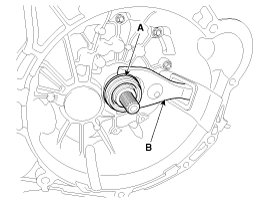 5. Install the clutch release fork (B), clutch release bearing (A).