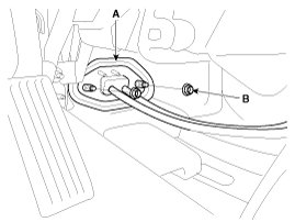 1. Install the control cable (B) and clip (A) on the bracket.