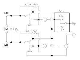 3. Connect positive (+) and negative (-) battery cables to terminals 3 and 2 respectively to see that the washer motor runs and water is pumped.