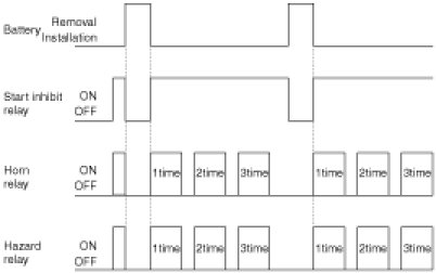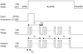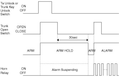 When the system is set off, the alarm (horn) sounds and the hazard lamp flash for about two minutes or until the system is disarmed by unlocking the transmitter.