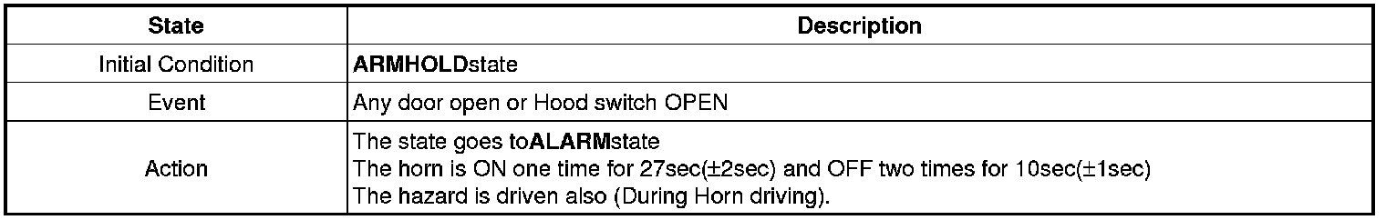 (4Doors Locked) & (4Door Not Close ON->OFF) & (Trunk Open Switch=ON) or (Hood Switch=ON)