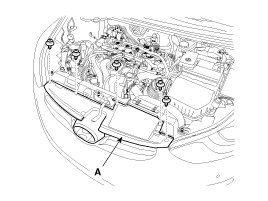 1. Remove the radiator grill upper cover mounting clips.