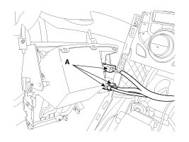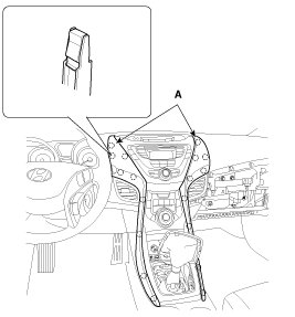 1. Using a screwdriver or remover, remove the crash pad center garnish (A).