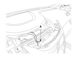 1. Using a screwdriver or remover, remove the crash pad center garnish (A).