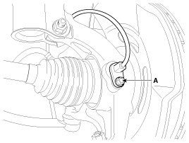 2. Remove the front wheel speed sensor mounting bolt (A).
