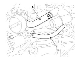 5. Disconnect the bypass hose (A) and the throttle body coolant hose (B).