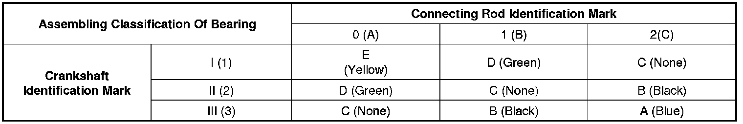 (9) If the measurement from the plastigage is too wide or too narrow, remove the upper and lower bearing and then install new bearings with the same color mark. Recheck the oil clearance.