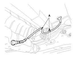 Disconnect 2 oxygen sensor wiring clips (A) from under body before removing the front muffler.