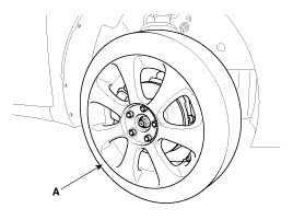 Be careful not to damage to the hub bolts when removing the front wheel and tire (A).