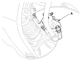 4. Loosen the bolt and then remove the wheel speed sensor (A).