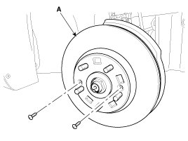 3. Remove the brake caliper mounting bolts , and then hold the brake caliper assembly (A) with wire.