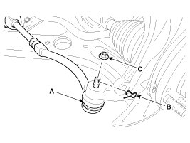 7. Remove the tie rod end ball joint (A) from the knuckle.
