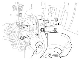 10. Loosen the strut mounting bolts and then remove the knuckle assembly (A).