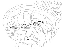 9. Loosen the hub mounting bolt and then remove the hub (A) from the torsion beam.