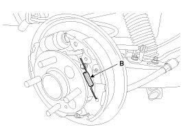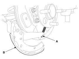 7. Disconnect the parking brake cable (A) from lining (B).