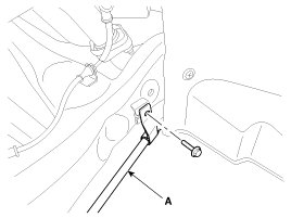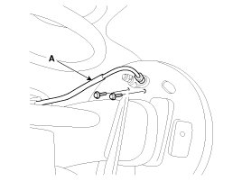 3. Loosen the bolt and the remove the parking brake cable (A).
