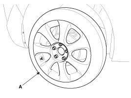Be careful not to damage to the hub bolts when removing the rear wheel and tire (A).