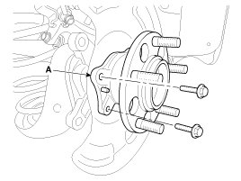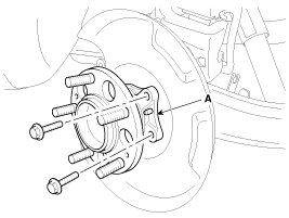 5. Loosen the bolts and then remove the hub bearing (A).