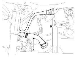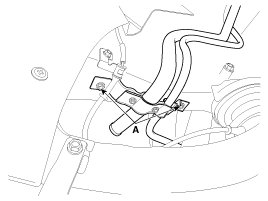 4. Remove the filler-neck assembly from the vehicle after removing the bracket mounting bolts (A).