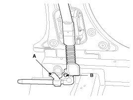6. Loosen the anchor pretensioner mounting bolt (B) and remove the anchor pretensioner.