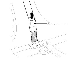 7. Insert the seat belt to the anchor pretensioner (A).