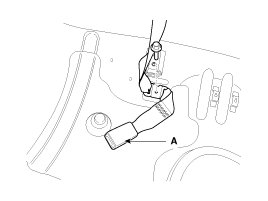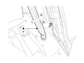 2. After loosening the mounting bolt, then remove the rear seat belt lower anchor (A).