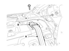 3. After loosening the retractor (B) mounting bolt, then remove the rear seat belt (A).