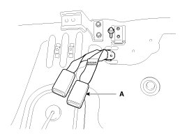 2. Loosen the mounting bolt, and then remove the rear seat belt buckle (A).