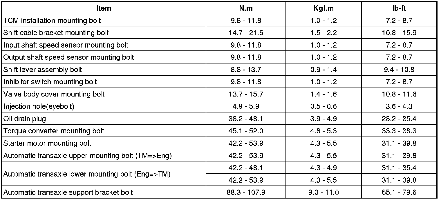 Tightening Torques