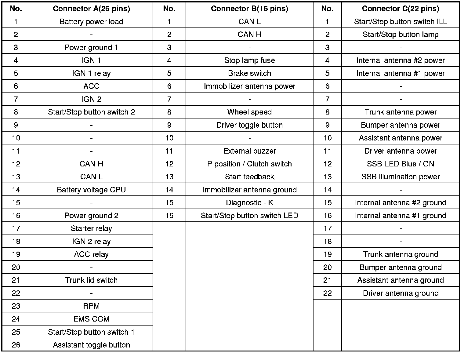 Connector Pin Information