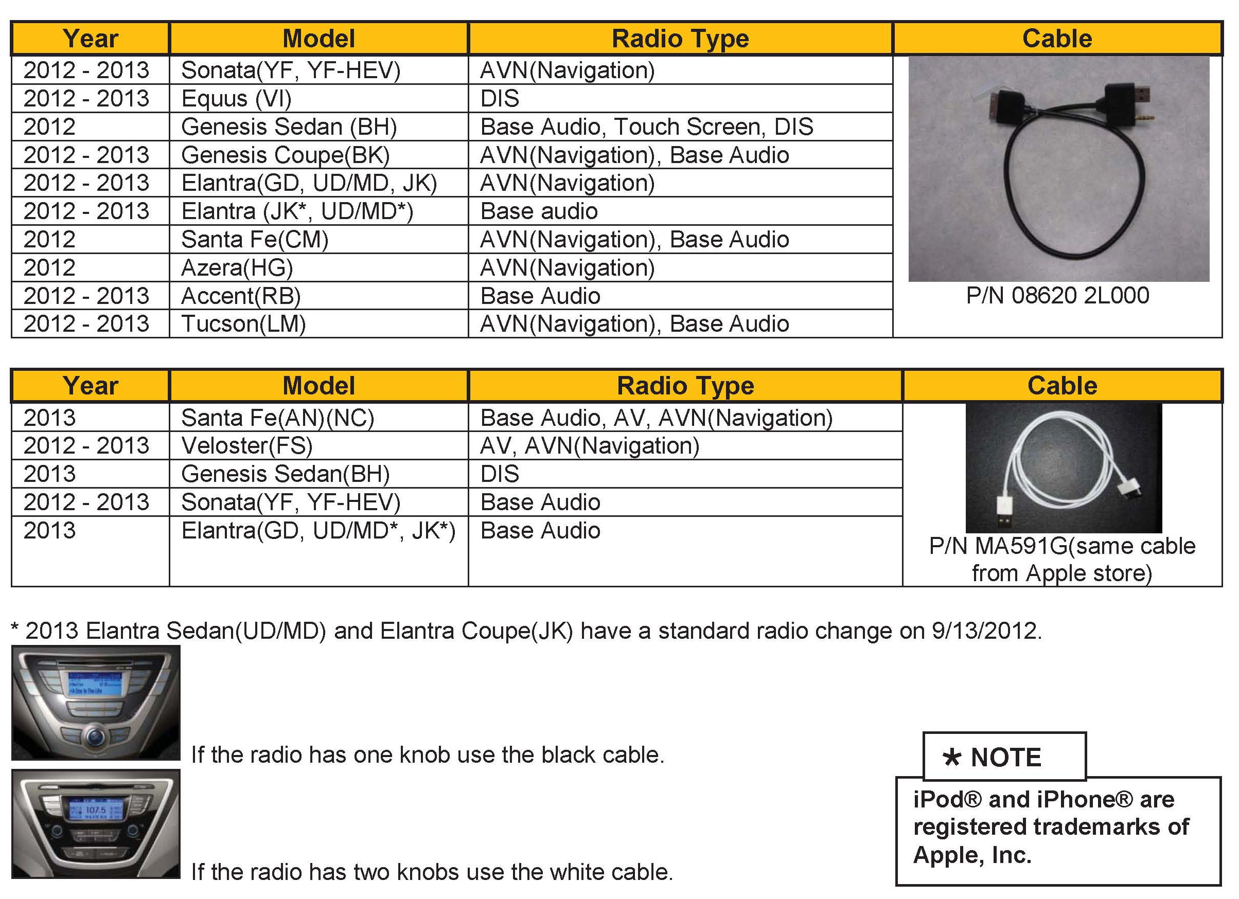 It is very important that a compatible USB/IPOD cable is used with radio units for 2012 and 2013 Model Year vehicles to ensure full iPod features and functions in the audio and navigation system.
