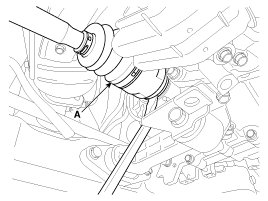 - Use a pry bar (A) being careful not to damage the transaxle and joint.
