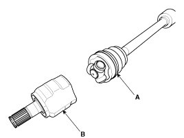3. Pull out the boot from transaxle side joint case (B).