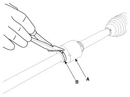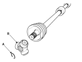 1. Remove the circlip (B) from the driveshaft spline (A).