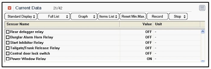 3. To consult the present input/output value of BCM, "Current DATA". It provides information of BCM input/output conditions of smart junction box.